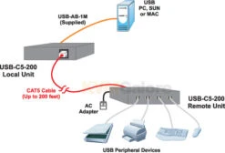 USB-C5-200: Extend four (4) USB devices up to 200 feet via CAT-5Â