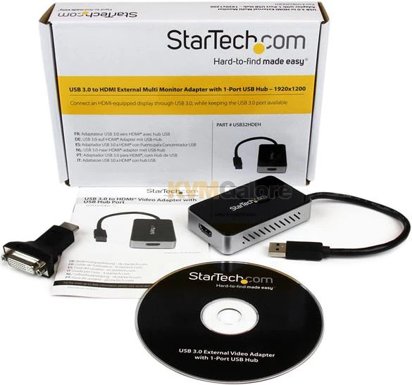 USB32HDEH USB 3.0 to HDMI® adapter is TAA compliant and turns a USB 3.0 port into an HDMI output port with 1920×1200/1080p video support. The adapter features built-in USB 3.0 pass-through, which offers a connection port in place of the USB port used for connecting the HDMI adapter – an ideal workaround for Ultrabook™ or laptop users, where only a limited number of USB ports are available.