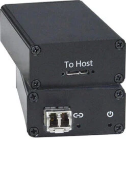 XTENDEX® 1-port USB 3.0 extender via fiber optic cable extends one USB 3.0* device up to 1,148 feet (350 meters) using a duplex LC singlemode or multimode fiber optic cable. Each extender consists of a local unit that connects to a computer, and a remote unit that connects to a USB 3.0 device. The local and remote units are interconnected via two-strand LC singlemode or multimode fiber optic cable.