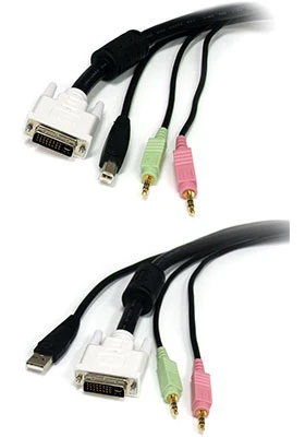 The 4-in-1 KVM cable is a cost-effective and convenient solution that’s suitable for use with DVI supported USB KVM switches, allowing you to share a USB peripheral set between two computers configured for high definition output.