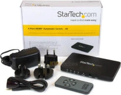 VS421HD4K 4-port HDMI 4K switch lets you share a display or projector with four HDMI-enabled audio/video source devices. The switch features four independent inputs that each support 4K resolution and 7.1 surround sound audio.