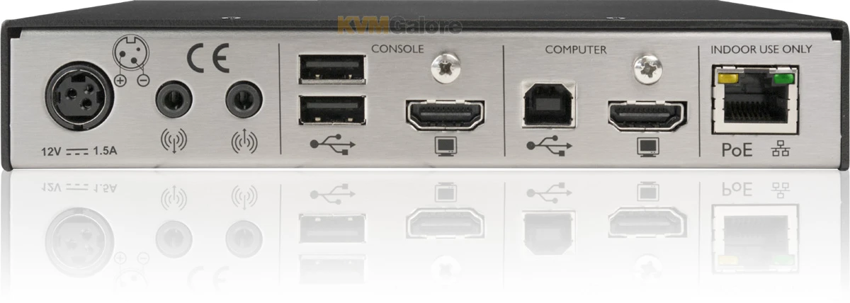 Video and USB feed through ports are available. These enable a local console at the source computer. A local computer is also supported at the user station.