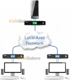 - Multiple consoles, one host: Alternatively, a different grouping of XDIPs can form a KVM sharer (aka KVM splitter or reverse KVM) to allow up to 256 receivers to access and control the resources of a single PC host system.